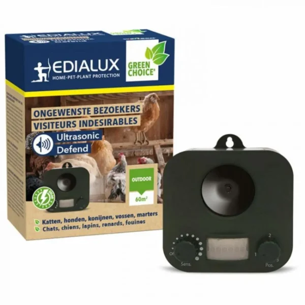 Cet appareil repousse efficacement les nuisibles par l’émission d’ultra-sons. Ces derniers ne sont pas diffusés en continu, seulement lorsque le capteur infrarouge de l’appareil détecte les mouvements d’un indésirable. La sensibilité du détecteur de mouvements se règle manuellement. Les animaux, tels que les taupes, les chiens, les chats, les oiseaux, les renards, les lapins, les fouines, effrayés par les ultra-sons, s’éloignent de la zone sans être blessés. Cet appareil est complètement inoffensif pour les animaux et les humains (enfants, adultes, femmes enceintes…). Ce répulsif fonctionne à l’aide de batteries rechargeables (NiMh 1.2 V 800) grâce au panneau solaire intégré. Il suffit à couvrir une zone de 60 m2 et s’utilise toute l’année.