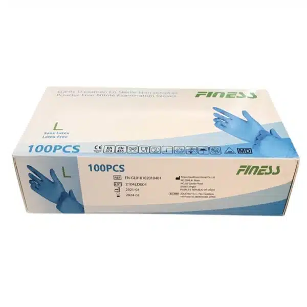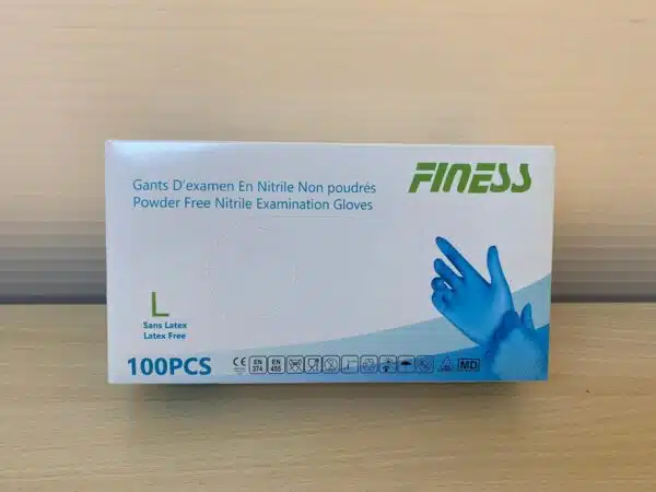Les gants jetables Finess, de taille L, sont vendus par lot de 100. Leur conception en nitrile est douce et agréable à porter. Elle ne contient ni latex, ni caoutchouc, ni vinyle, ni poudre. Cela vous garantit l’absence de tâches et minimise les risques d’irritation et d’abrasion de la peau pour un plus grand confort. Ces gants vous protègent lors de la manipulation de produits chimiques dangereux. Ils sont qualifiés comme équipement de protection de catégorie 3. Ils bénéficient d’une meilleure résistance que les gants conçus en d’autres matières et d’une excellente dextérité. Grâce à leur bord recourbé, ces gants sont faciles à enfiler et à retirer.