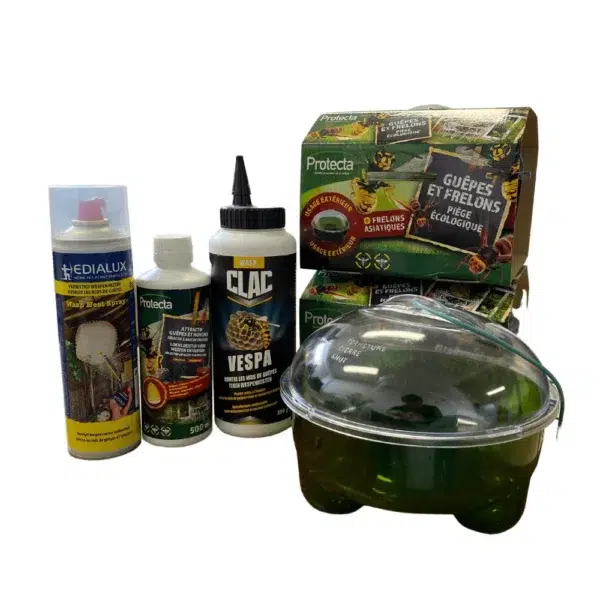 Ce kit complet permet de lutter efficacement contre les fortes infestations de guêpes. Il se compose de :