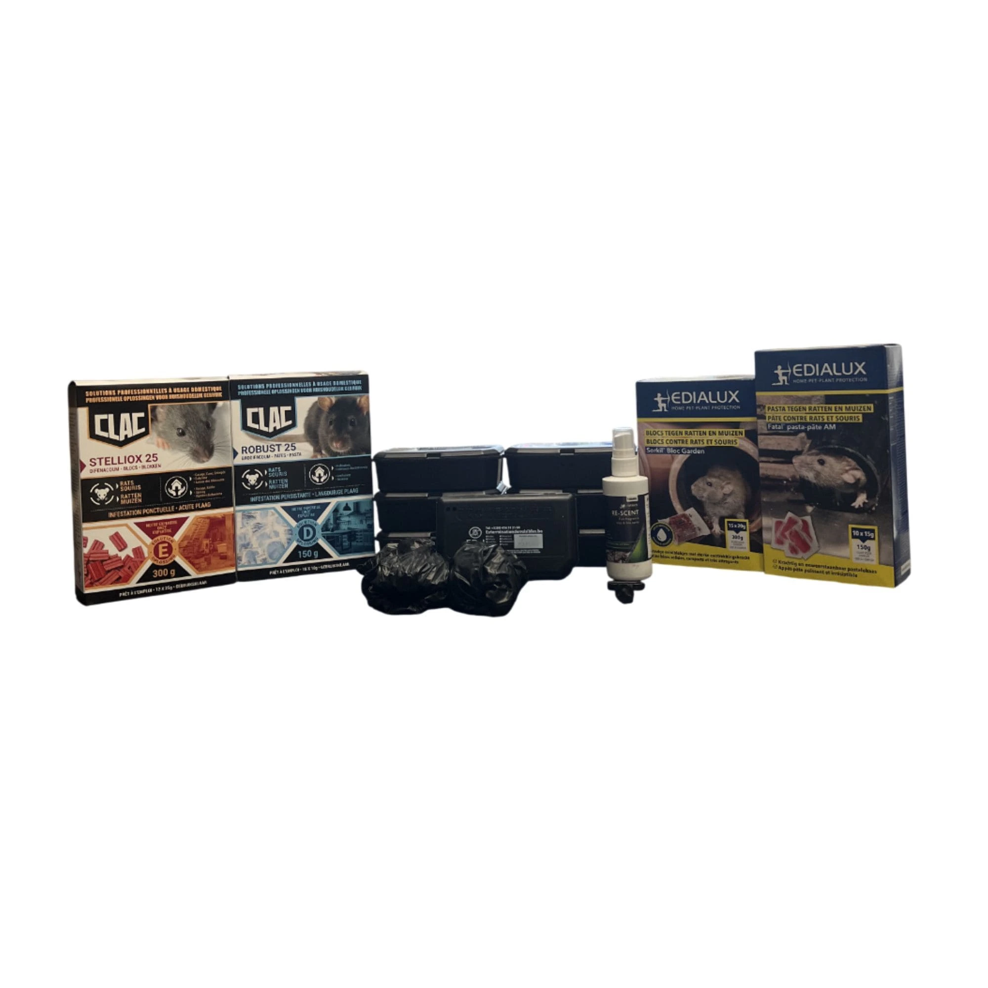 • Contient un spray attractif Rescent arôme poisson, 15 pâtes et 12 blocs souricides de la marque CLAC, 10 pâtes Fatal AM et 15 blocs Sorkil d’Edialux, 7 postes d’appâtage pour souris, une clé universelle pour poste d’appâtage,